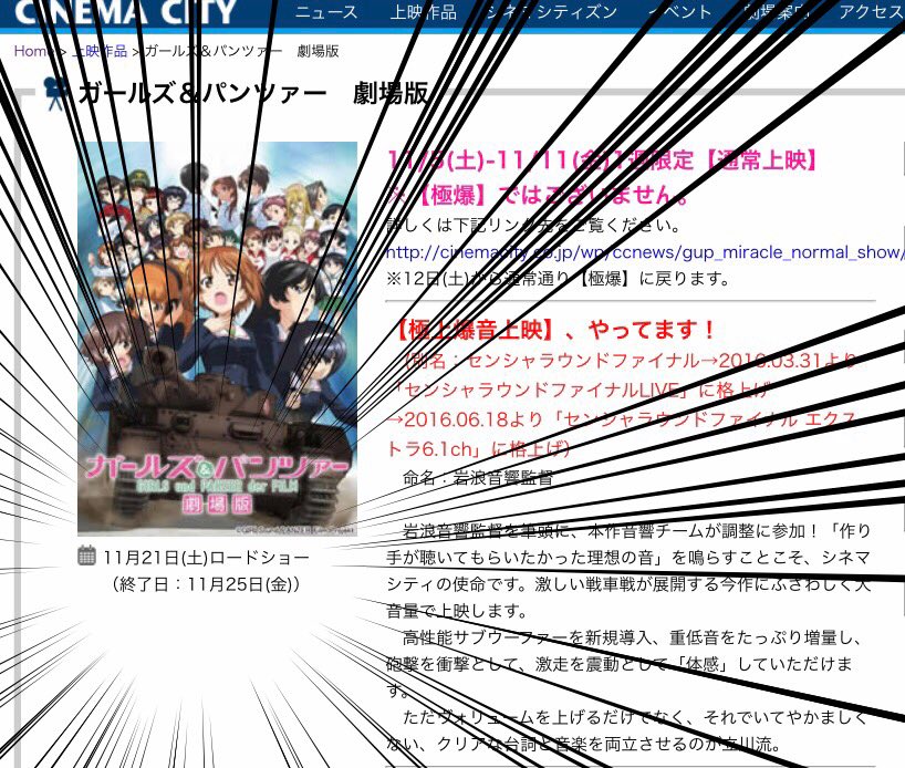 立川シネマシティでの劇場版ガルパンの上映終了日告知に震えるガルパンおじさん達 ついにこの日が来たか Togetter