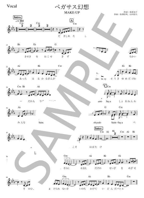 楽譜 ペガサス幻想 聖闘士星矢 主題歌 Make Up メロディー譜 Make Up メロディ 初級 Piascore 楽譜ストア