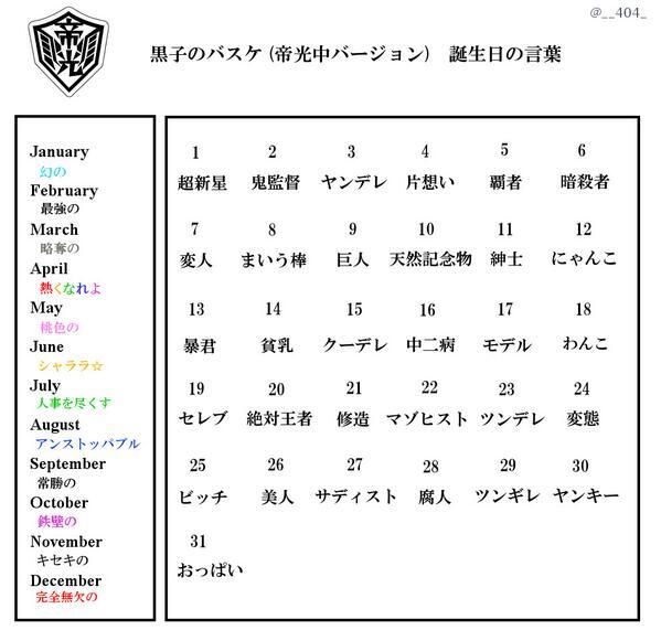 誕生日占いbot 公式 Twitter પર 黒子のバスケ 誕生日言葉 Https T Co Gkijxvwkmb 当たってる人はrt Rt拡散 Kurobas